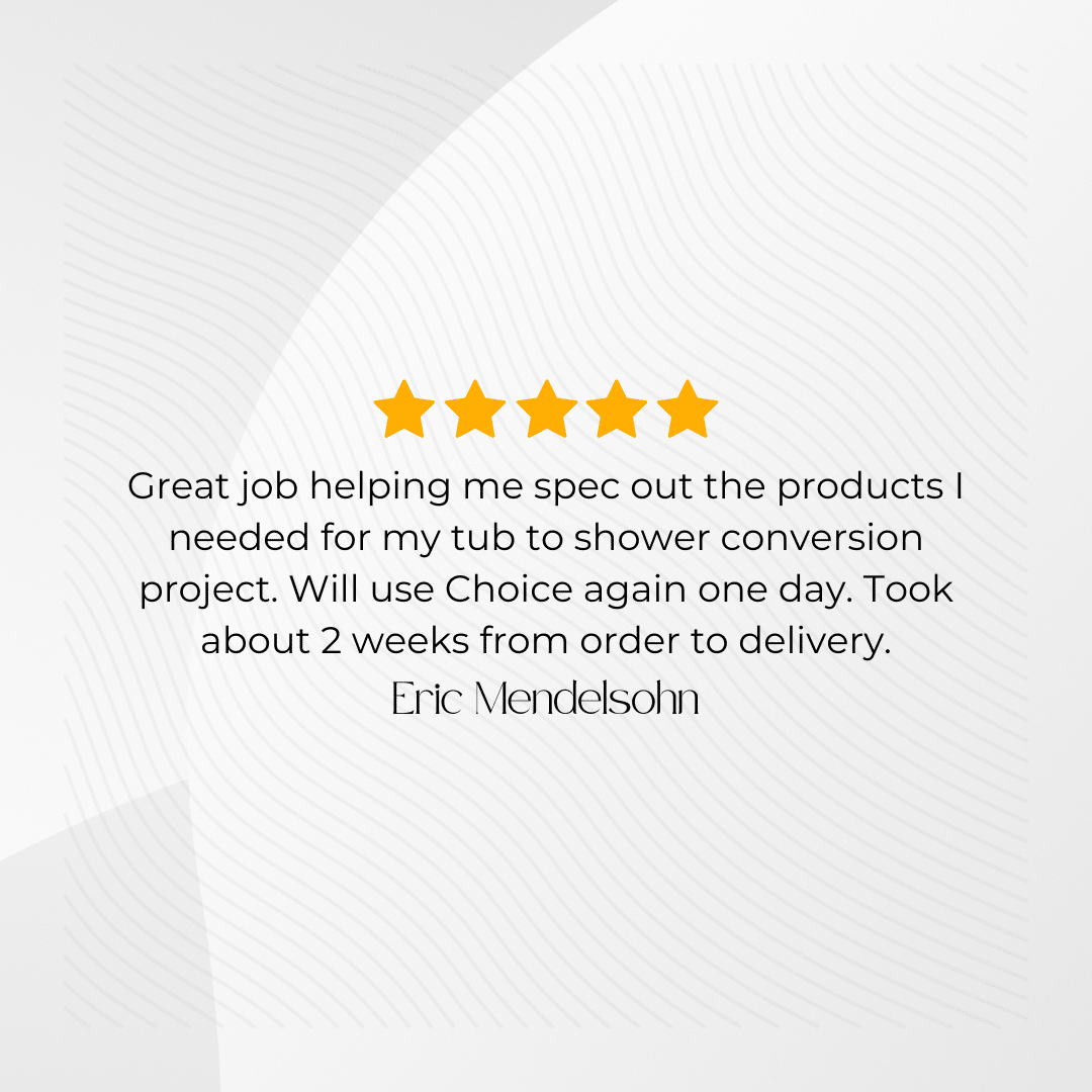 We pride ourselves on top-level customer service. We will guide you through the process of selecting products that work in your bathroom. Call, text, or email your project specialist any time.