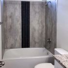 Check out our low maintenance, waterproof, Fibo shower and tub surround panels. With a wide range of colors and options, these 3/8″ thick laminate shower wall panels offer a 100% waterproof system for bathrooms and showers where the walls need extra durability and easy cleaning. Aqualock design ensures each panel clicks into place with relative ease for do-it-yourselfers or professional contractors. A lifetime guarantee warranty is offered for residential applications of our bathroom wall panels.