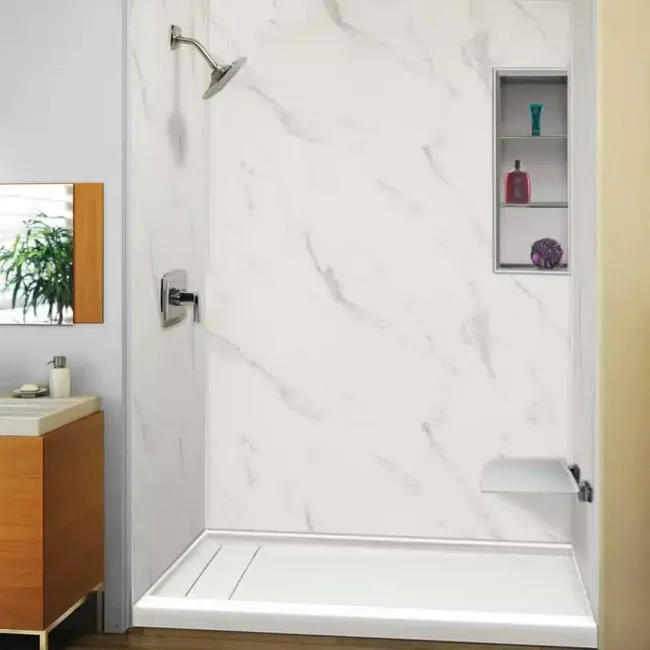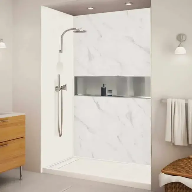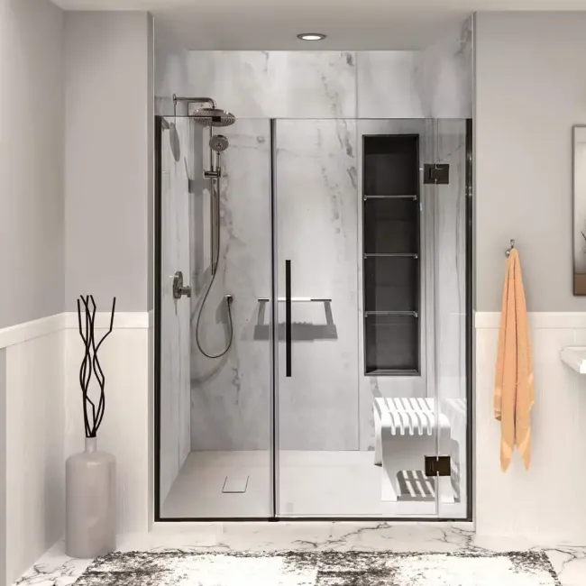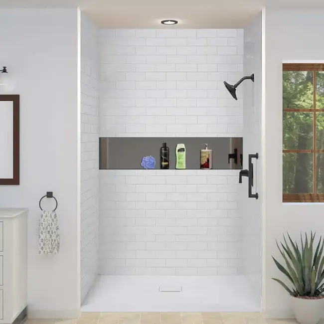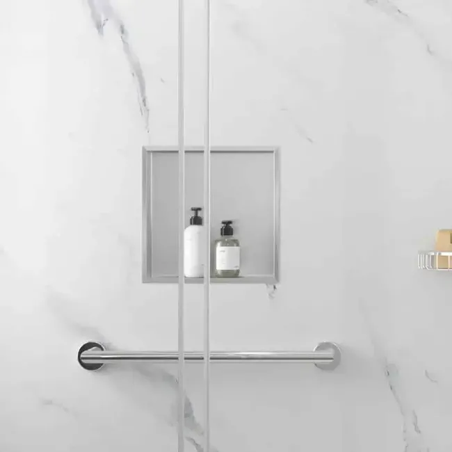 Check out our contemporary shower accessories for organizing your shower products and functional needs in the wet area of your bathroom. Learn what shower extras are available to compliment your new shower wall choices. We carry a sleek line of niches, grab bars, fold down seats, corner shelves, grab bars that are easy to install. These trendy shower essentials are not from the “same old, same old” days.