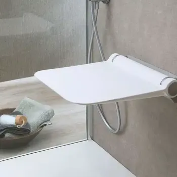 This 16 ½” wide x 18” deep luxury shower seat is not only contemporary and stylish, but also built for comfort with a texture which prevents that ‘slipping’ feeling. The seat is rated for a 450 lbs. weight capacity. This seat comes in white; graphite and bright coral red. Mounting hardware is included with the flanges 16” apart to be easily added to existing studs. There is also an option backrest or backrest with arms available for this seat.