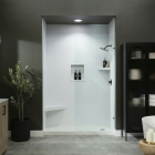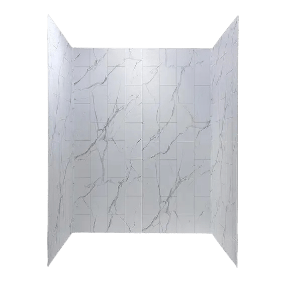 Panel dimensions: 36″ x 96″ x 0.2″ thick click-together panels designed to reduce seams and speed up installation. Field cut as needed to fit any shower size. Substantially thicker than acrylic.