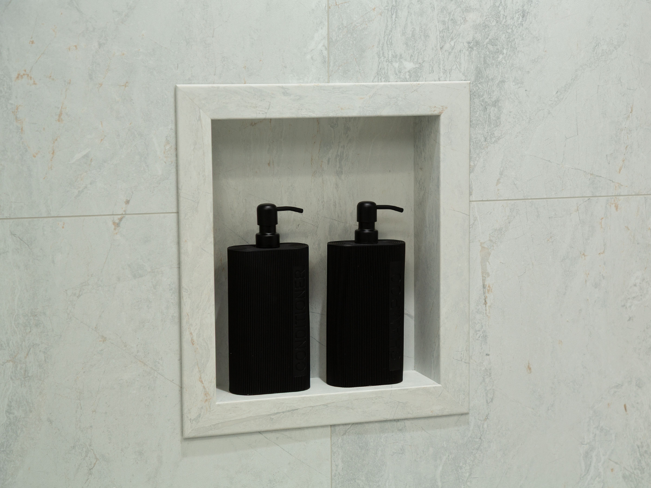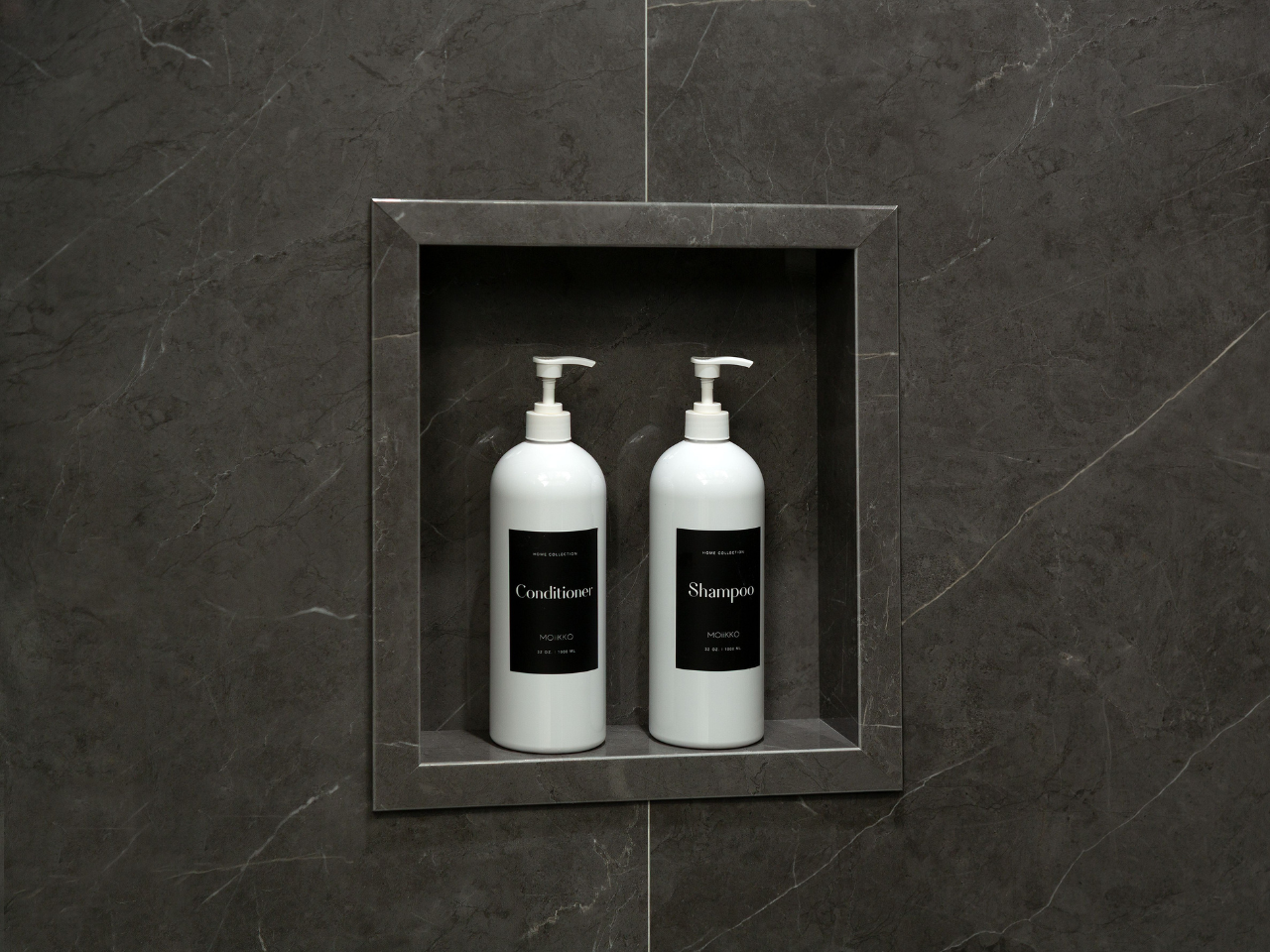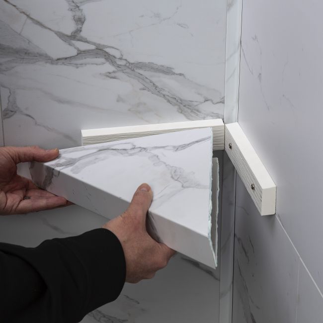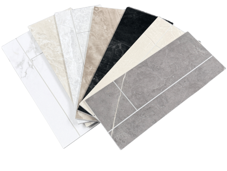 Our wall panels provide a low-maintenance alternative that can still replicate the look of large-format tile. They are also significantly faster to install than ceramic tile. Most importantly, they are a great value.